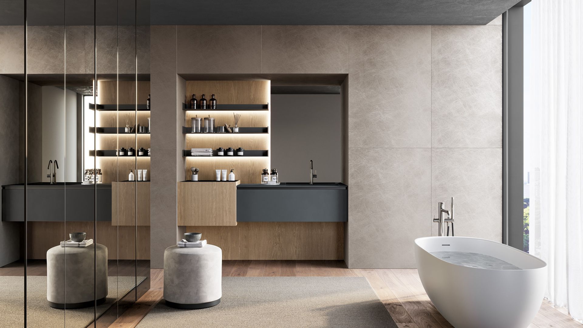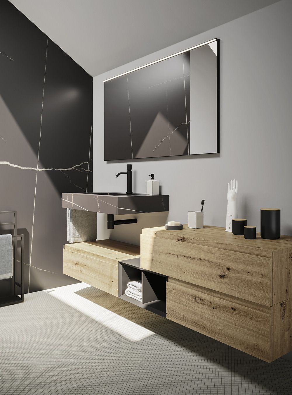 Dai mobili lavabo sofisticati ai pratici porta asciugamani, ogni elemento della nostra collezione fonde eleganza e funzionalità.